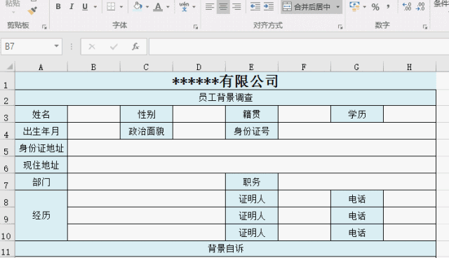 8、表格只能在指定位置填写