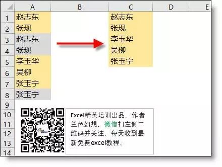 【例4】从下表A列提取不重复的值(唯一值),结果放在C列